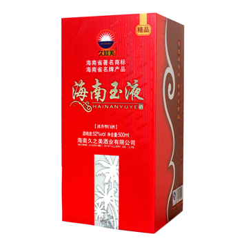 海南玉液酒是海南久之美酒業(yè)有限公司為海南本土市場量身定制的優(yōu)質濃香型白酒,飲后或豪飲后均不上頭、不口干、身體恢復快。2012年被海南省工商局認定為“海南省著名商標”;2013年被海南省名牌產(chǎn)品認定委員會授予為“2013年海南省名牌產(chǎn)品”稱號。該酒經(jīng)多位國家級和省級評酒專家品評,一致認同海南玉液酒不亞于“五糧液” 。該酒的包裝設計富有強烈時代氣息和濃厚地方特色,創(chuàng)造性地采用了“要想身體好常來海南島”宣傳海南的流行語,溶匯了海南文化元素,適宜接待應酬及做饋贈禮品,是海南...[更多內(nèi)容]